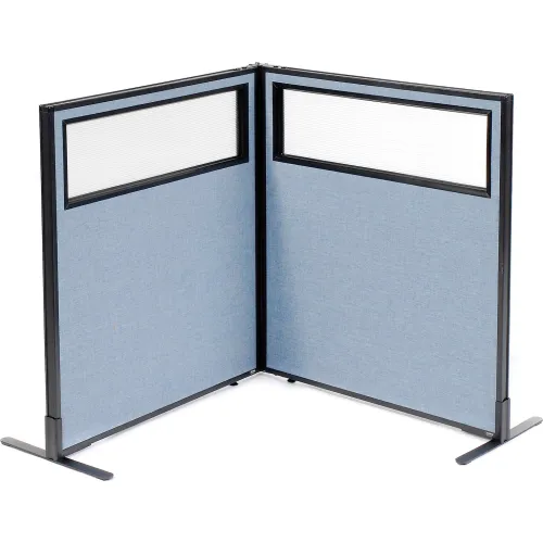 Interion® Freestanding 2-Panel Corner Room Divider w/Partial Window 36-1/4"W x 42"H Panels Blue
