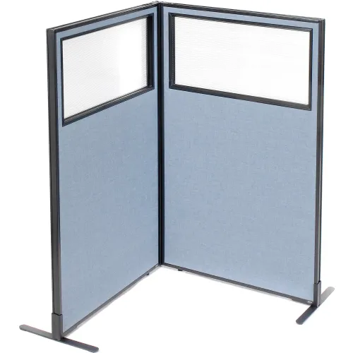 Interion® Freestanding 2-Panel Corner Room Divider w/Partial Window 36-1/4"W x 60"H Panels Blue