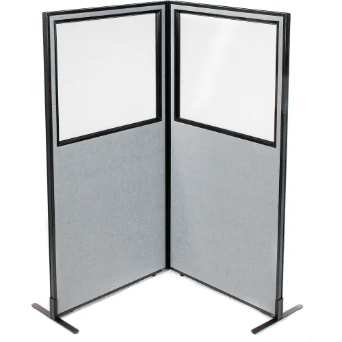 Interion® Freestanding 2-Panel Corner Room Divider w/Partial Window 36-1/4"W x 72"H Panels Gray