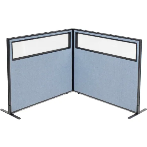 Interion® Freestanding 2-Panel Corner Room Divider w/Partial Window 48-1/4"W x 42"H Panels Blue