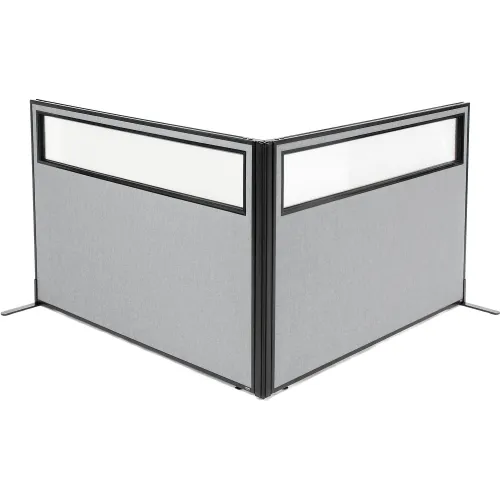 Interion® Freestanding 2-Panel Corner Room Divider w/Partial Window 60-1/4"W x 42"H Panels Gray