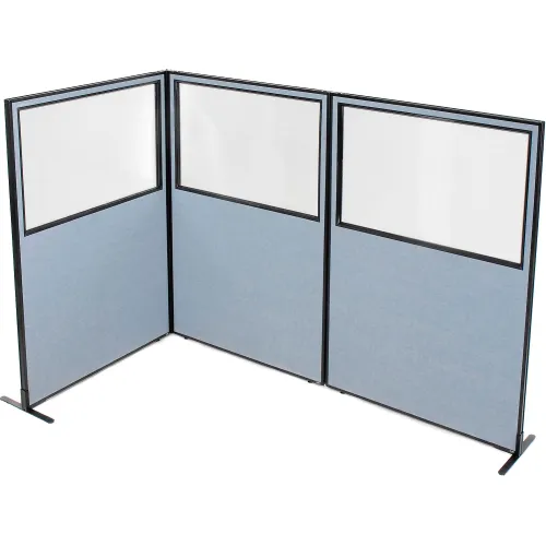 Interion® Freestanding 3-Panel Corner Room Divider w/Partial Window 48-1/4"W x 72"H Panels Blue