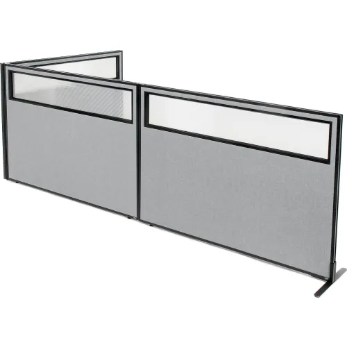 Interion® Freestanding 3-Panel Corner Room Divider w/Partial Window 60-1/4"W x 42"H Panels Gray