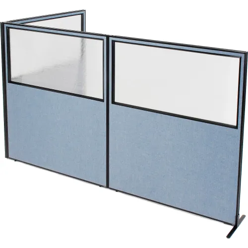 Interion® Freestanding 3-Panel Corner Room Divider w/Partial Window 60-1/4"W x 72"H Panels Blue