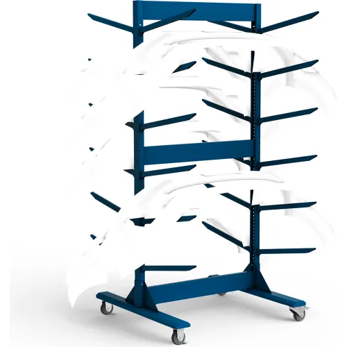 Rousseau Metal Freestanding Mobile Bumper Rack, 6 Levels, 45"W x 42"D x 91"H, Blue
