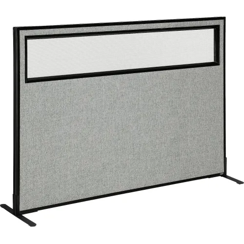 Interion® Freestanding Office Partition Panel with Partial Window, 60-1/4"W x 42"H, Gray