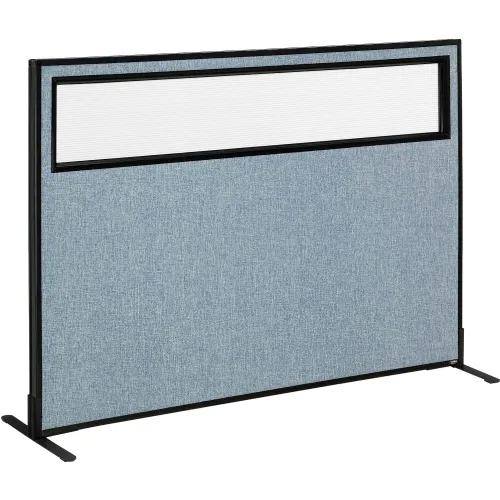 Interion® Freestanding Office Partition Panel with Partial Window, 60-1/4"W x 42"H, Blue
