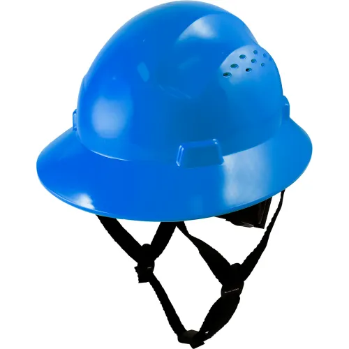 General Electric Full Brim Hard Hat, 4 Pt. Ratchet Suspension, Non-Vented, Class E, G, Type 1, Blue