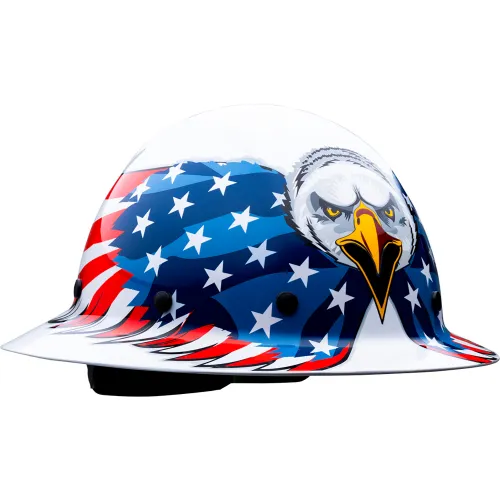 Wolfjaw Full Brim Hard Hat w/ Graphic Eagle Design, 8-Point Riveted, Non-Vented, White