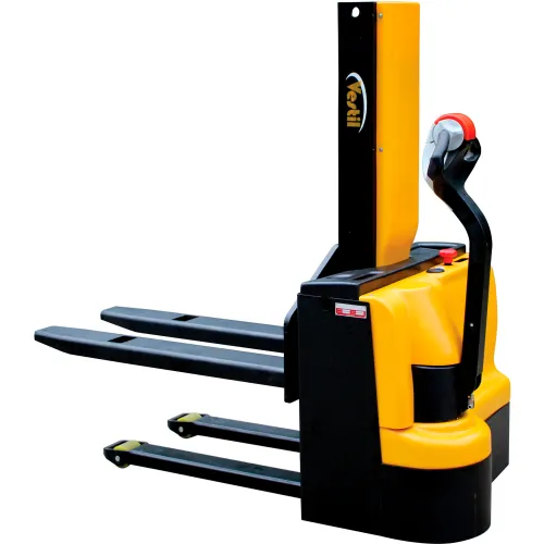 Vestil Fully Powered Narrow Mast Stacker SNM3-43-FF-27 w/ Fixed Forks/Straddle Legs - 3000 Lb. Cap