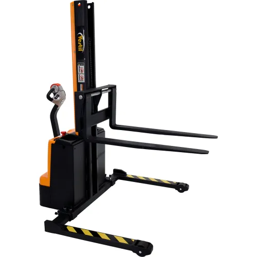 Vestil Fully Powered Narrow Mast Stacker SNM15-62-AA with Adj. Forks/Straddle Legs - 1500 Lb. Cap