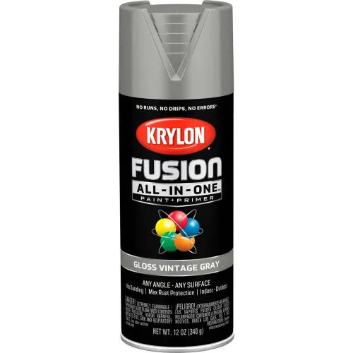 Krylon Fusion All-In -One Combination Aerosol Paint & Primer, Gloss Vintage Gray, 12 oz. - Pkg Qty 6