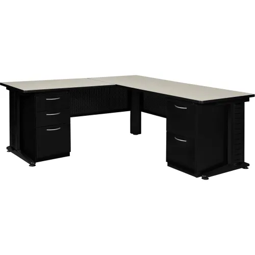 Regency Fusion L Shaped Desk w/ Double Pedestal Drawer, 66"W x 78"D x 29"H, Maple