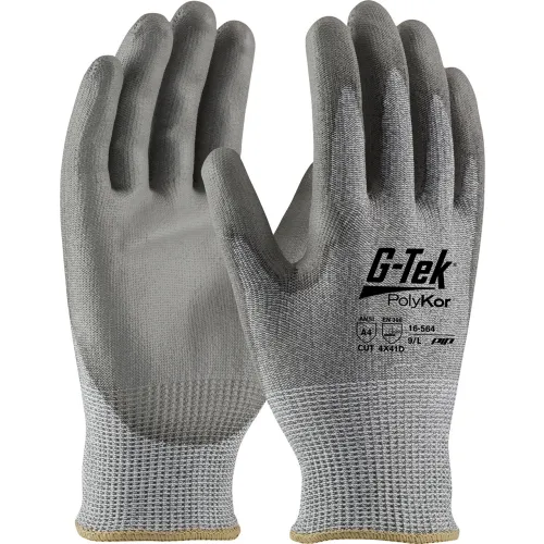 G-Tek PolyKor Industry Grade Seamless Knit Blended Glove Polyurethane Coated Flat Grip, Medium, 12PR