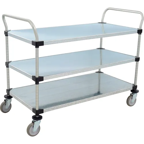 Nexel®, 3 Shelf, Utility Cart, Galvanized, 48"W x 24"D x 38"H, Poly Casters,4 Swivel