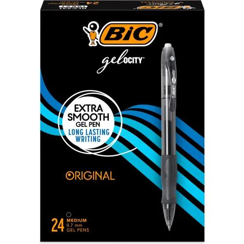 BIC® Gel-ocity Gel Pen Value Pack, Retractable, Medium 0.7 mm, Black Ink, 24/PK