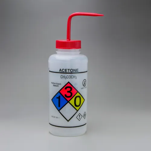 Bel-Art GHS Labeled Safety-Vented Acetone Wash Bottles, 1000ml (32oz), Polyethylene w/Red PP Cap 2PK