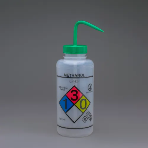 Bel-Art GHS Labeled Safety-Vented Methanol Wash Bottles, 1000ml (32oz), Polyethylene 2PK