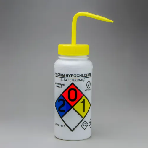 Bel-Art GHS Labeled Safety-Vented Sodium Hypochlorite Bleach Wash Bottles, 500ml (16oz), 4Pk