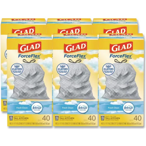 Glad® OdorShield Tall Kitchen Drawstring Trash Bags - White, 13 Gal, 0.95 Mil, 240/Cs - 78361