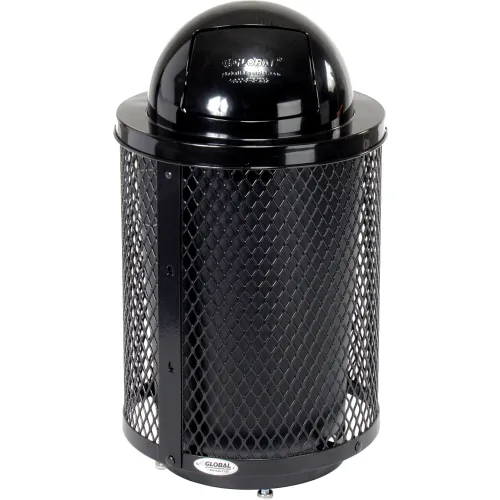 Global Industrial Outdoor Diamond Steel Trash Can With Dome Lid & Base, 36 Gallon, Black