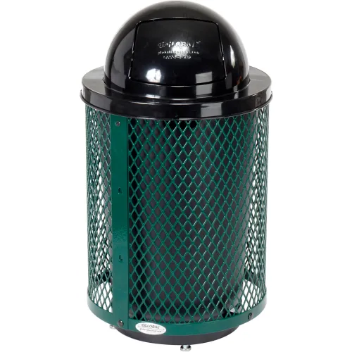 Global Industrial Outdoor Diamond Steel Trash Can With Dome Lid & Base, 36 Gallon, Green