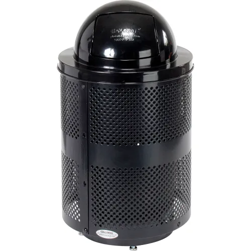 Global Industrial Outdoor Perforated Steel Trash Can With Dome Lid & Base, 36 Gallon, Black