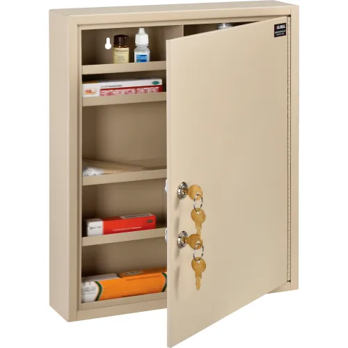 Global Industrial Medical Security Cabinet w/Double Key Locks, 14"Wx3-1/8"Dx17-1/8"H, Beige