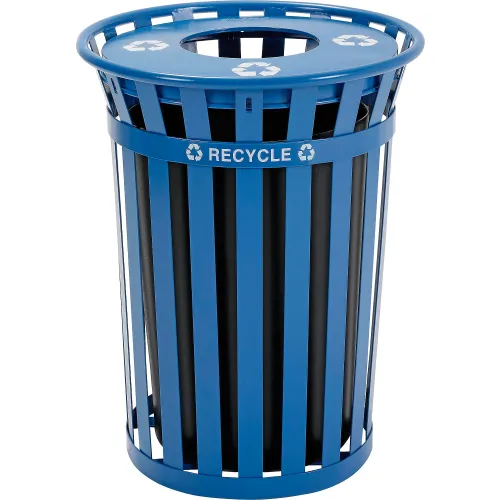 Global Industrial Outdoor Slatted Recycling Can w/Flat Lid, 36 Gallon, Blue