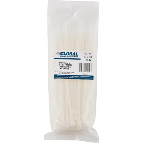 Global Industrial 8" Cable Zip Ties, Natural with UV, 75 Lb., 100 Pack