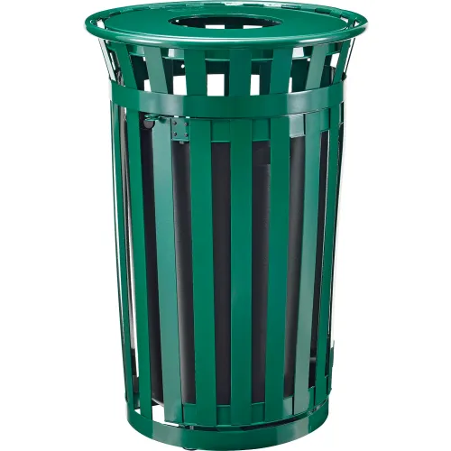 Global Industrial Outdoor Slatted Steel Trash Can W/Access Door & Flat Lid, 36 Gallon, Green