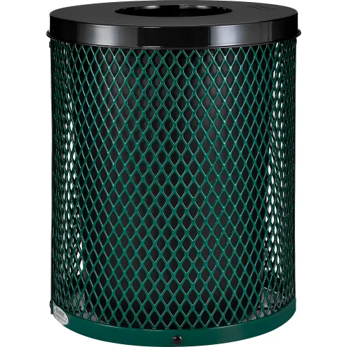 Global Industrial™ Outdoor Diamond Steel Trash Can With Flat Lid, 36 Gallon, Green