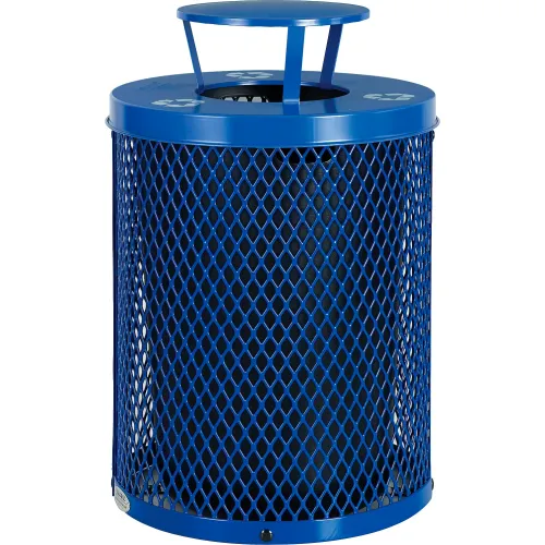 Global Industrial™ Outdoor Diamond Steel Recycling Can w/Rain Bonnet Lid, 36 Gallon, Blue