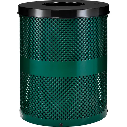 Global Industrial Outdoor Perforated Steel Trash Can With Flat Lid, 36 Gallon, Green