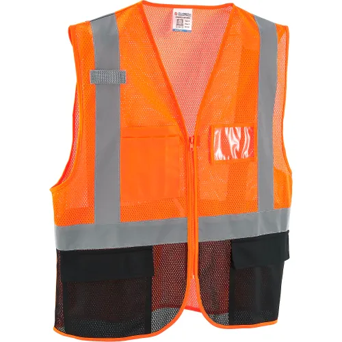 Global Industrial Class 2 Hi-Vis Safety Vest, 3 Pockets, Mesh, Orange/Black, S/M