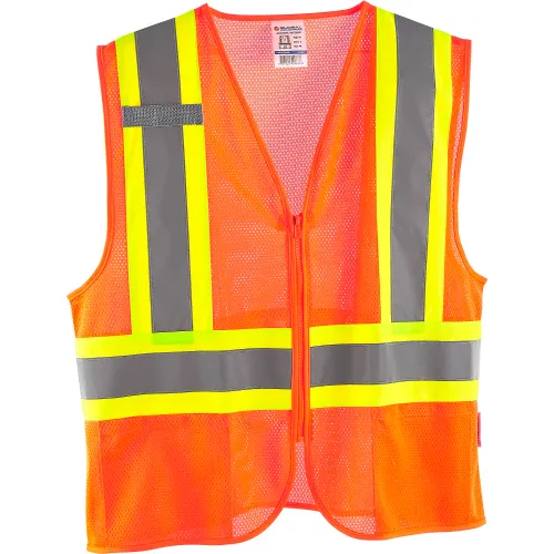 Global Industrial Class 2 Hi-Vis Safety Vest, 2 Pockets, Two-Tone, Mesh, Orange, 2XL/3XL