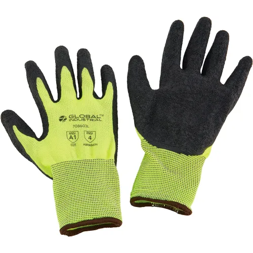 Global Industrial Crinkle Latex Coated Gloves, Hi-Viz Lime/Black, Large - Pkg Qty 12