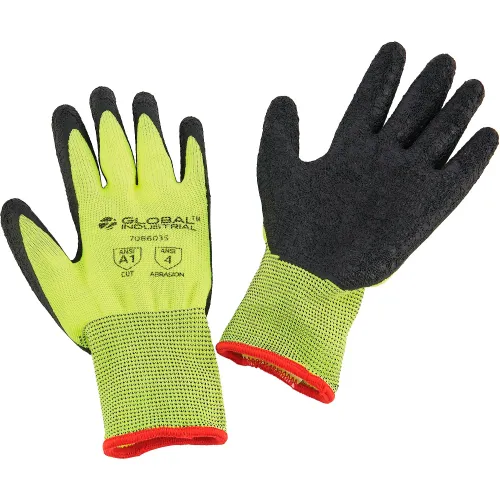 Global Industrial Crinkle Latex Coated Gloves, Hi-Viz Lime/Black, Small - Pkg Qty 12