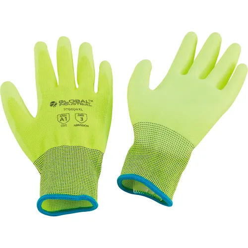 Global Industrial Flat Polyurethane Coated Gloves, Hi-Viz Lime, X-Large - Pkg Qty 12