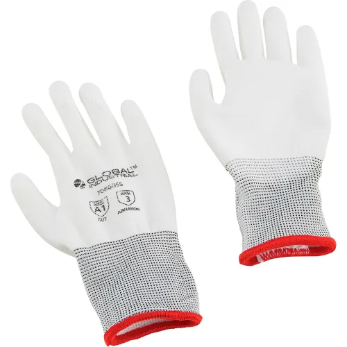 Global Industrial Flat Polyurethane Coated Gloves, White, Small - Pkg Qty 12