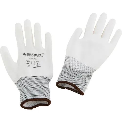 Global Industrial Flat Polyurethane Coated Gloves, White, Large - Pkg Qty 12