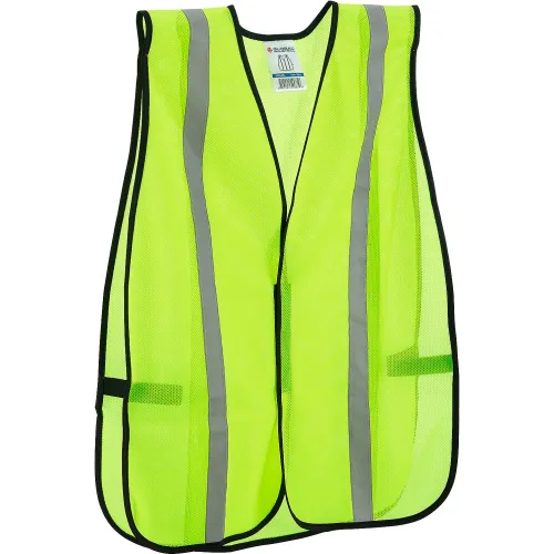 Global Industrial Hi-Vis Safety Vest, 1" Reflective Strips, Mesh, Lime, One Size
