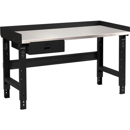 Global Industrial 48 x 30 Adj Height Workbench w/Drawer, Black- Stainless Steel Square Top