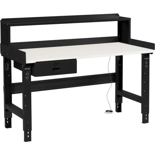 Global Industrial 72 x 36 Adj Height Workbench w/Drawer&Riser, Black- ESD Square Edge Top