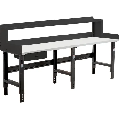Global Industrial 96 x 36 Adj Height Workbench w/Drawer&Riser, BK- Plastic Laminate Square Top