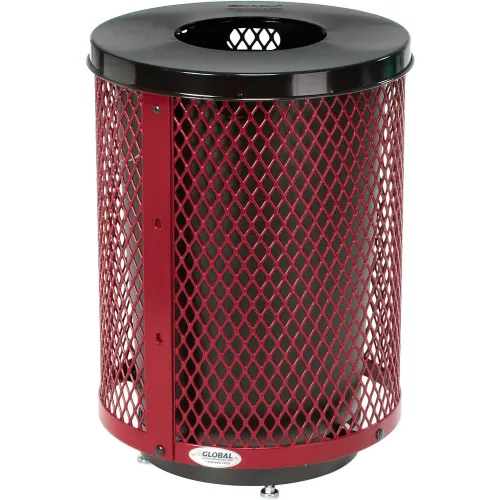 Global Industrial Outdoor Diamond Steel Trash Can With Flat Lid & Base, 36 Gallon, Red