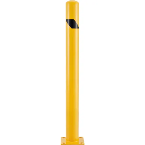 Global Industrial Steel Safety Bollard W/Black Hazard Tape, 4.5"D x 48''H