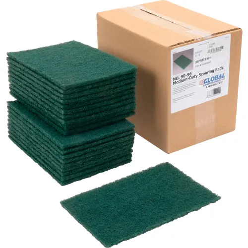 Global Industrial Medium Duty Scouring Pads, Green, 6" x 9" - Case of 20 Pads