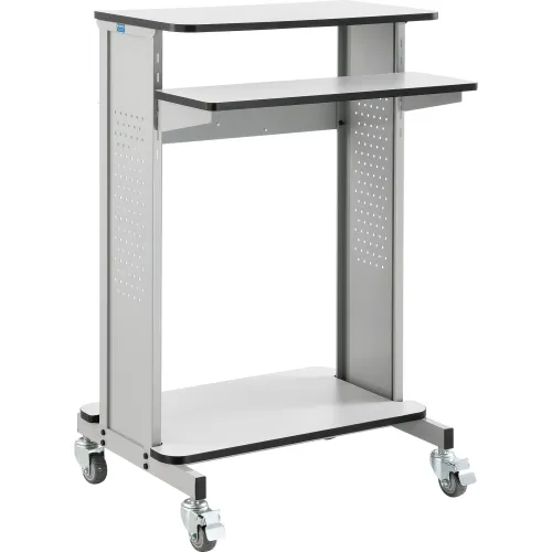 Global Industrial Mobile Computer Workstation & Standing Desk With Keyboard & Mouse Tray, Gray