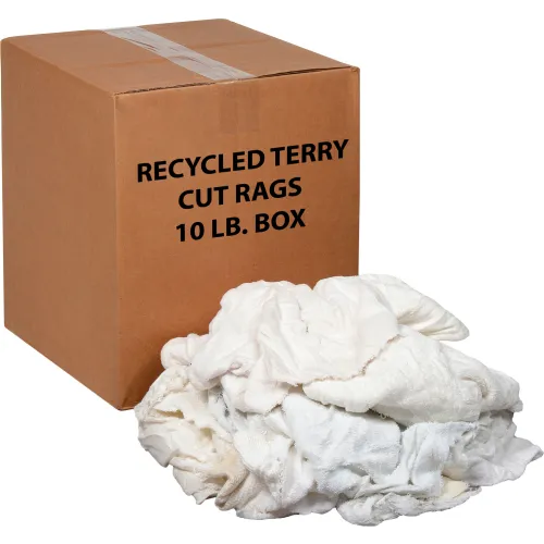 Global Industrial Premium Recycled White Cotton Terry Cut Rags, 10 Lb. Box